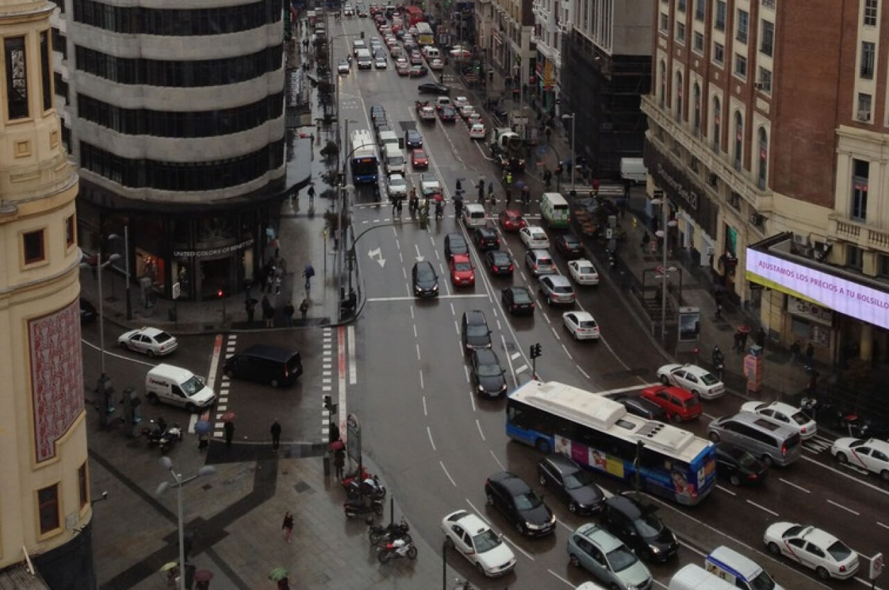 Taxis honk impatiently, as commuters rush by, Cafés hum with conversations, under a caffeine-high sky.